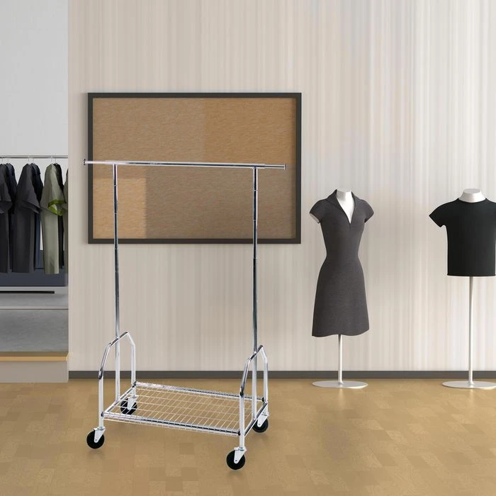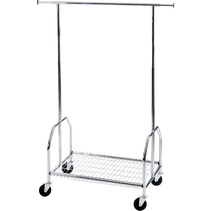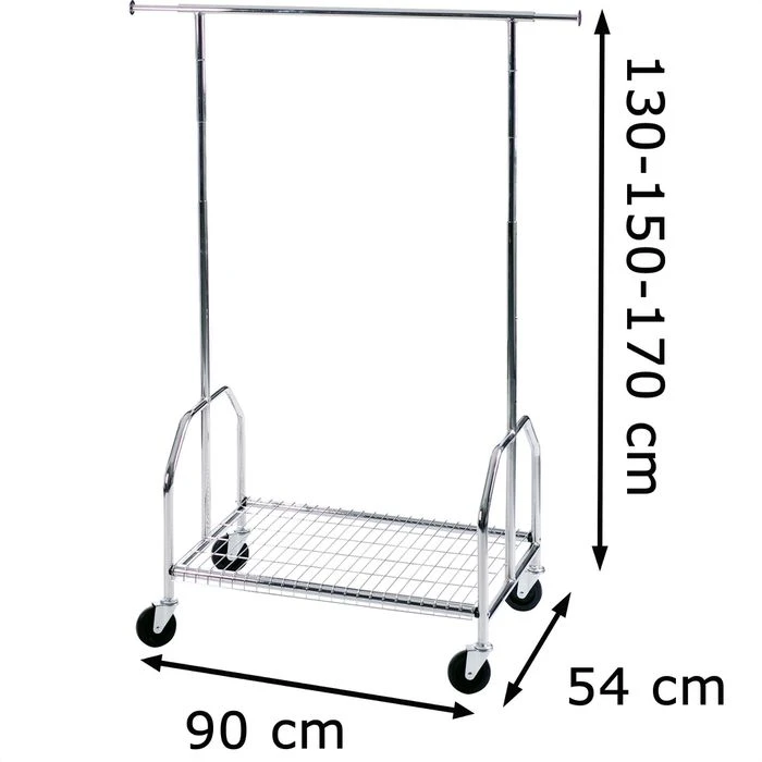 sonstiges: aus verchromtem Metall, große Lenkrollen aus Vollgummi (Ø 100 mm), Kleiderstange beiderseits ausziehbar