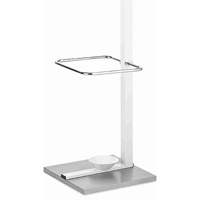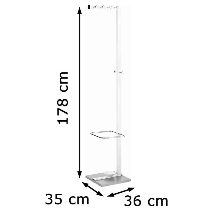sonstiges: aus lackiertem Metall, 8 Mantelhaken, 2 Hut-/Taschenhaken, ausgefallenes Design, quadratischer Fuß aus geschliffenem Edelstahl, mit Schirmständer und Tropfschale