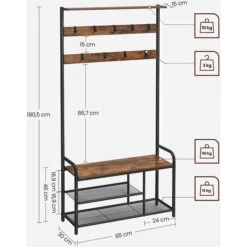 Vasagle GarderobenstÀnder HSR410B01, Vintage, Mit 22 Haken, Metall / Holz, Schwarz / Braun