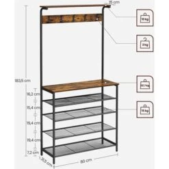 Vasagle GarderobenstÀnder RGR112B01, Vintage, Mit 2 Ablagen, Bis 170 Kg, Metall / Holz, Braun
