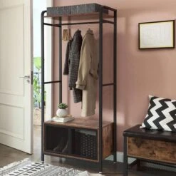 Vasagle Garderobenständer XHSR22BX, Vintage, Mit Schuhablage, Metall / Holz, Schwarz / Braun