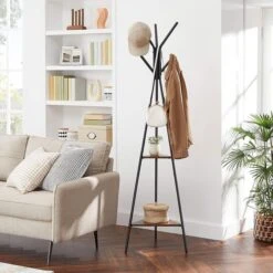 Vasagle Garderobenständer XHSR22BX, Vintage, Mit Schuhablage, Metall / Holz, Schwarz / Braun