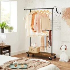 Vasagle Garderobenständer RGR120B01, Vintage, Mit Rollen & 2 Ablagen, Metall / Holz, Braun