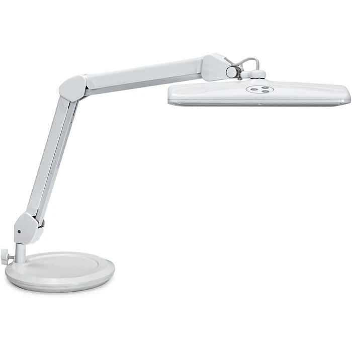 sonstiges: 360° drehbarer Gelenkarm aus Metall, dreidimensional verstellbarer Leuchtenkopf aus Kunststoff, Bedienfeld am Leuchtenkopf, stabiler Standfuß mit Beschwerungseinlage, 1,7 m Netzkabellänge