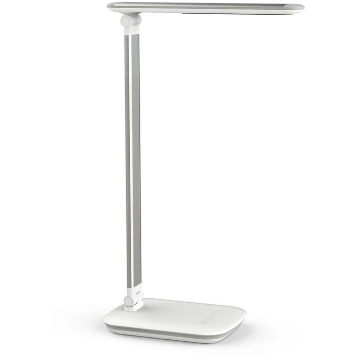 sonstiges: kompakt, platzsparend und handlich, Touch-Dimmer am Fuß, mit USB-Port zum Aufladen mobiler Geräte (5 V, max. 500 mA), dreh- und neigbarer Leuchtenkopf, stabiler Leuchtenfuß mit Beschwerungseinlage, 1,8 m Netzkabellänge