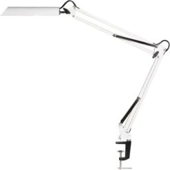Unilux Schreibtischlampe Swingo LED, Standfuß, Tischklemme, Dimmbar, Weiß
