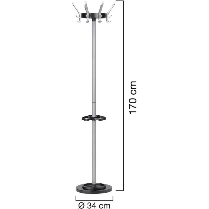 sonstiges: drehbare Hakenkrone mit 8 Hut- und 16 Mantelhaken, Schirmständer mit Tropfschale, standsicher durch schweren Standfuß